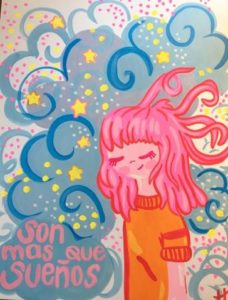 It is no secret that I am a dreamer. I carry many dreams, goals and passion for my art within me. The piece says “son mas que suenos” which translates to “they are more than dreams.”