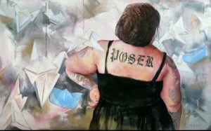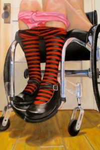 In my life I have experienced many obstacles and letting those experiences shine through my work I believe lets me express myself on a different level. I start out simply amusing myself with thinking up different scenarios and quite often collage images for pure fantasy sake. If it makes me smile and the energy feels good I usually go with it. I intentionally paint regular everyday things in unexpected ways.