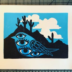 My little series of prints entitled “Creatures that Know” depicts a few elusive inhabitants of the subconscious mind. These are little spirit citizens, hailing from the domain which generates creativity, imagination, and intuition. My own sense of imagination is deeply connected to nature and the Earth, so these creatures represent that in their various aspects. As part of an all-women art and music show, these images are are meant to act as totems, embodying and honoring the hidden parts of ourselves that create, imagine, and believe in fantastical realities.